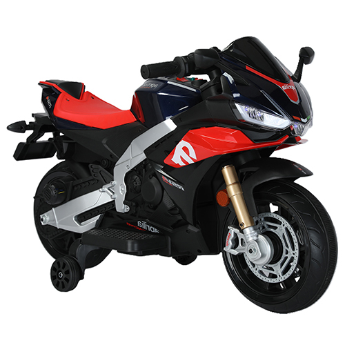 • Product description: APRILIA LICENSE PRODUCT'S SIZE:101*43*60CM 6V~4.5AH*1,1MOTOR ONE BUTTON START,MULTI-FUNTION PLAYER, MUSIC,BLUETOOTH,USB,MUTE WHEELS, LED HEADLIHTS AVAILABLE COLOR: BLUE+RED,BLACK+RED